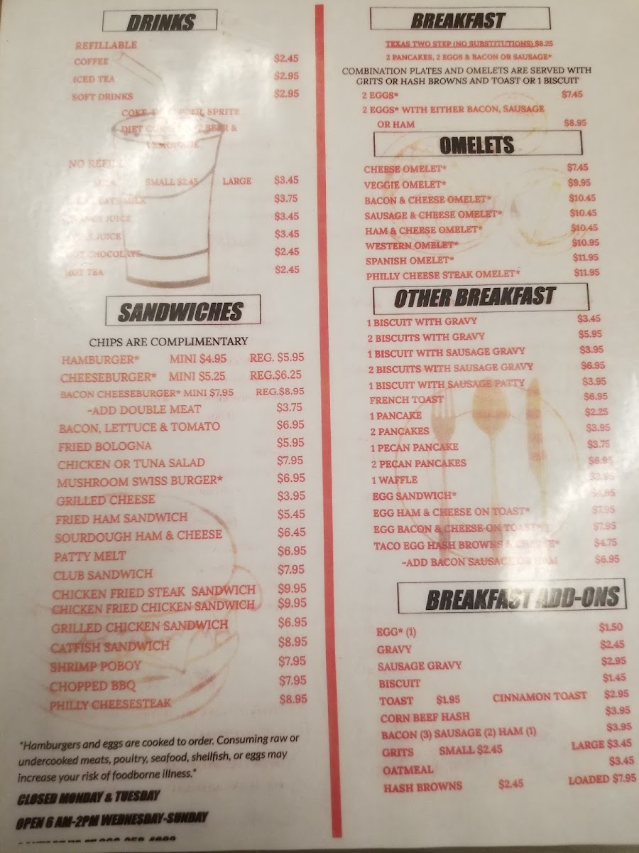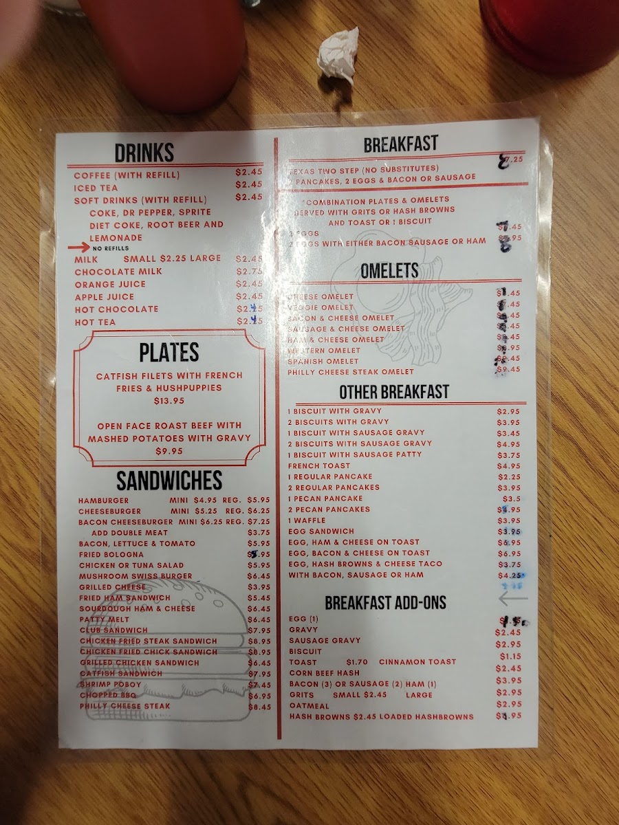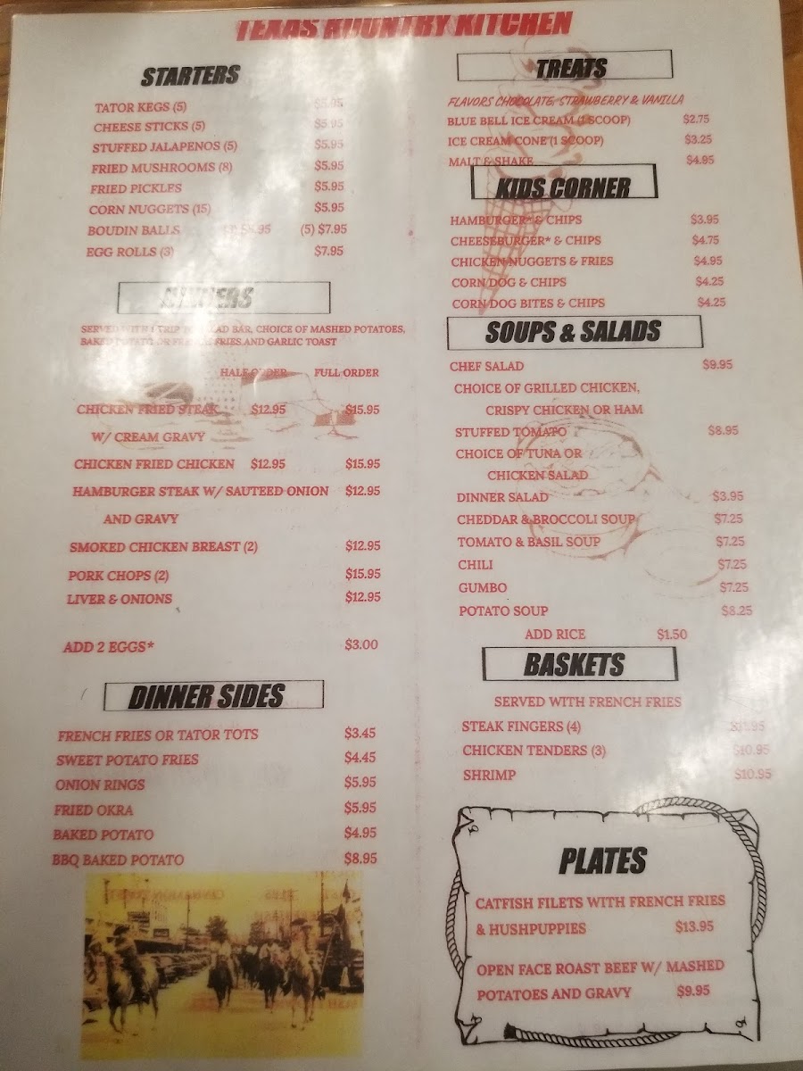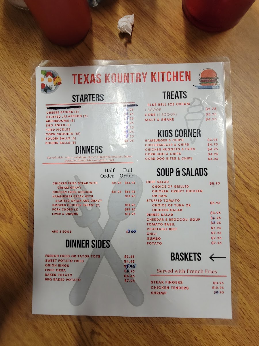 At Texas Kountry Kitchen, located at 313 N Main St, Dayton, TX 77535, we believe that good food and great company can make any day special. Dive into our menu and discover an array of hearty, homestyle dishes that are sure to satisfy your cravings! Start your day with our fluffy pecan pancakes drizzled with syrup or our savory breakfast plate featuring biscuits and gravy, bacon, and scrambled eggs. For lunch, don't miss out on our famous Texas cheeseburger and crispy fried chicken sandwich, accompanied by golden tater tots or zesty onion rings. Whether you're in the mood for a light bite like our delightful chicken salad or a filling club sandwich, we have something for everyone. And don’t forget to wash it down with a classic Coca-Cola! With flavors that embody the essence of Texas hospitality, we invite you to come taste the soul of Kountry cooking!
